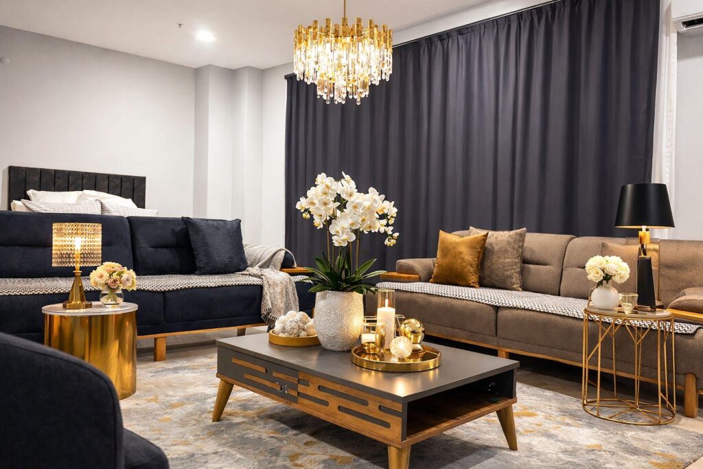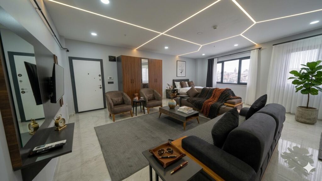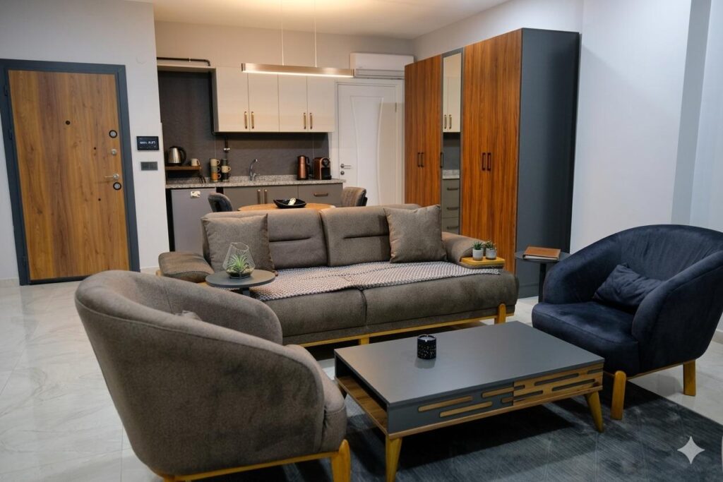 Özenle tasarlanmış mobilyalar ve sade bir lüksü yansıtan doğal malzemeler.